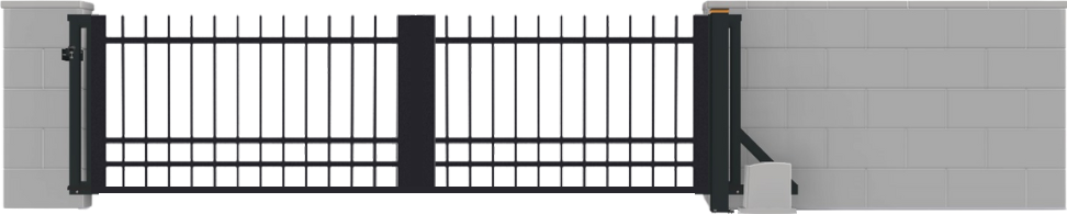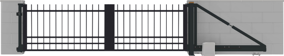Asi to nejběžnější řešení s maximální estetikou a symetrií. Každé křídlo se otevírá do strany a společně vytvářejí impozantní vstup. Vhodné řešení zejména pro širší vjezdy. Křídla se v běžných případech otevírají dovnitř pozemku. Obě křídla brány mohou být vybavena samostatným pohonem pro automatické otevírání.