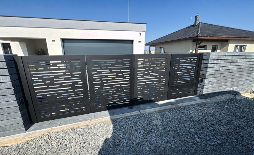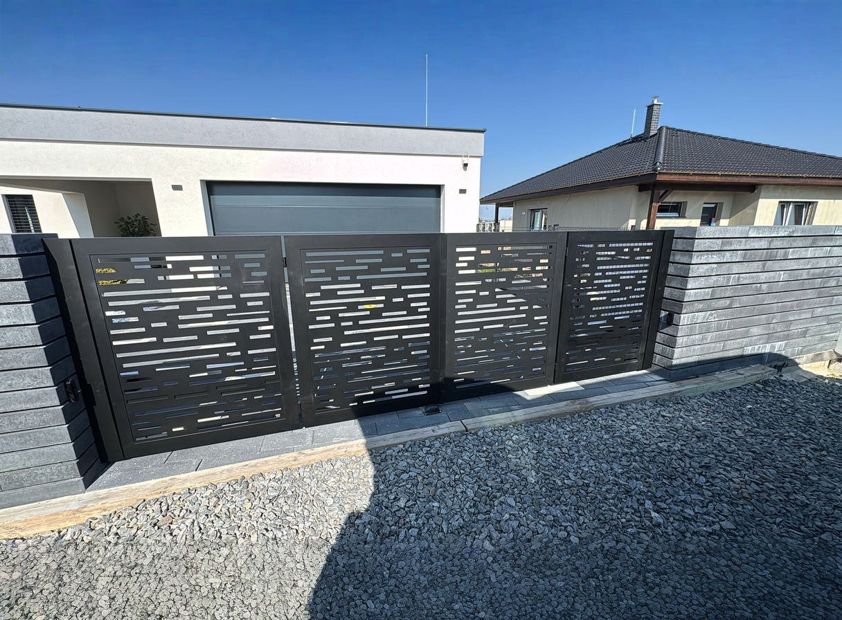V Moravanech jsme dokončili realizaci, která elegantně spojuje moderní architekturu s krásným a neobvyklým designem. Tento hliníkový plot s motivem PPD1 v sametově černé barvě (RAL 9005) se stal výrazným a vizuálně atraktivním prvkem nemovitosti, který perfektně doplňuje vzhled moderní novostavby. Zákazník si zvolil křídlovou skládací bránu, která je praktická i prostorově úsporná. Celé oplocení se pyšní vysokou kvalitou s dlouhou životností a s minimálními nároky na údržbu.