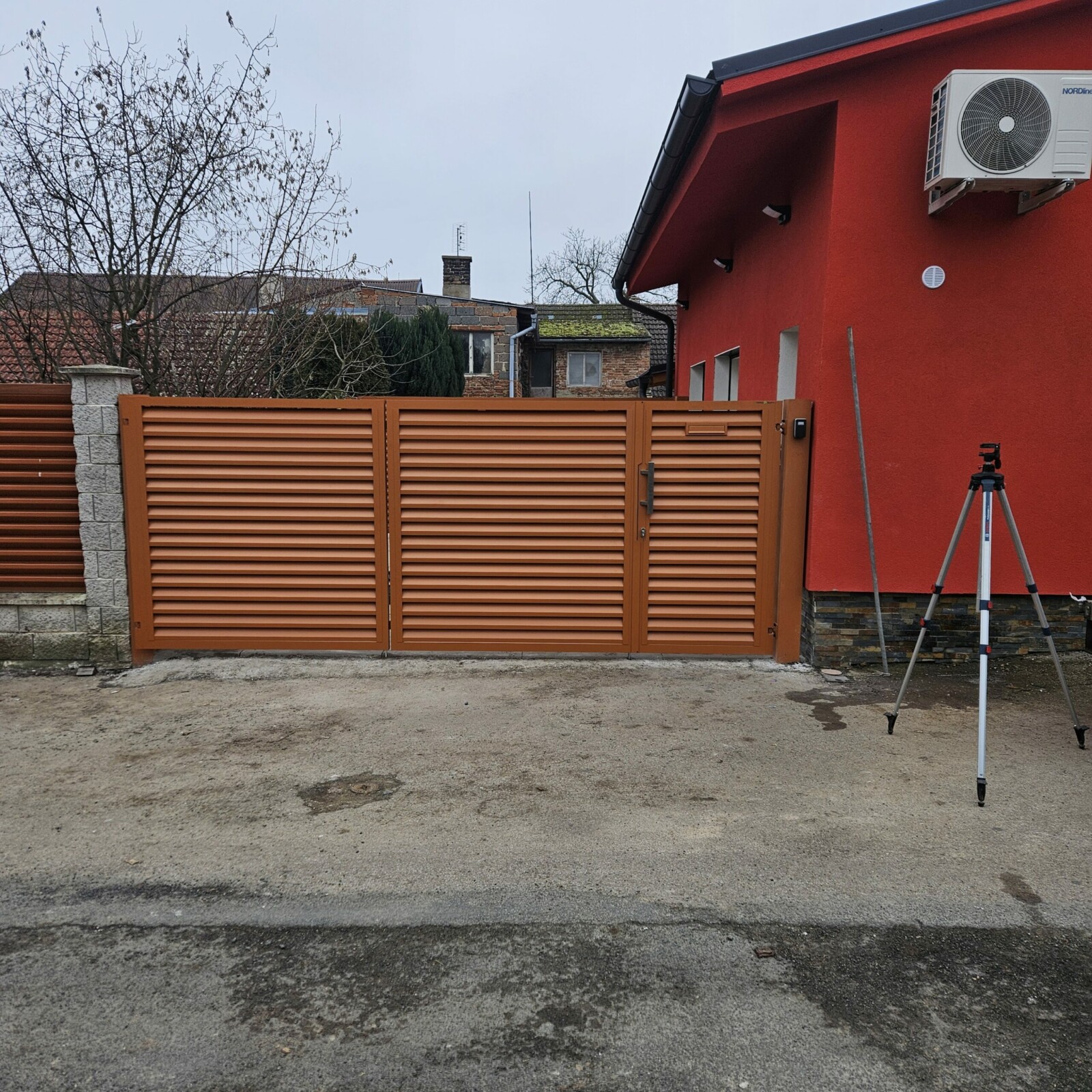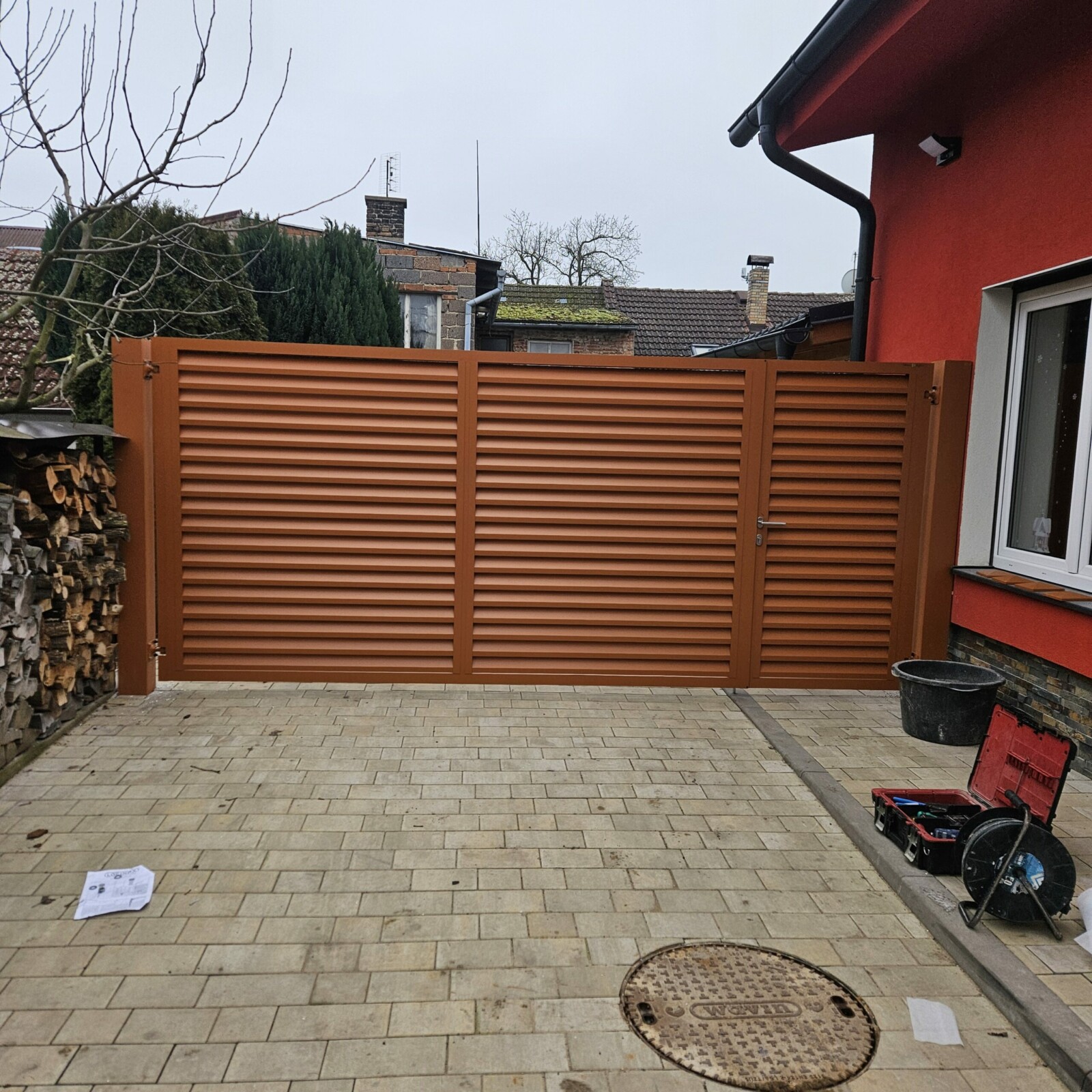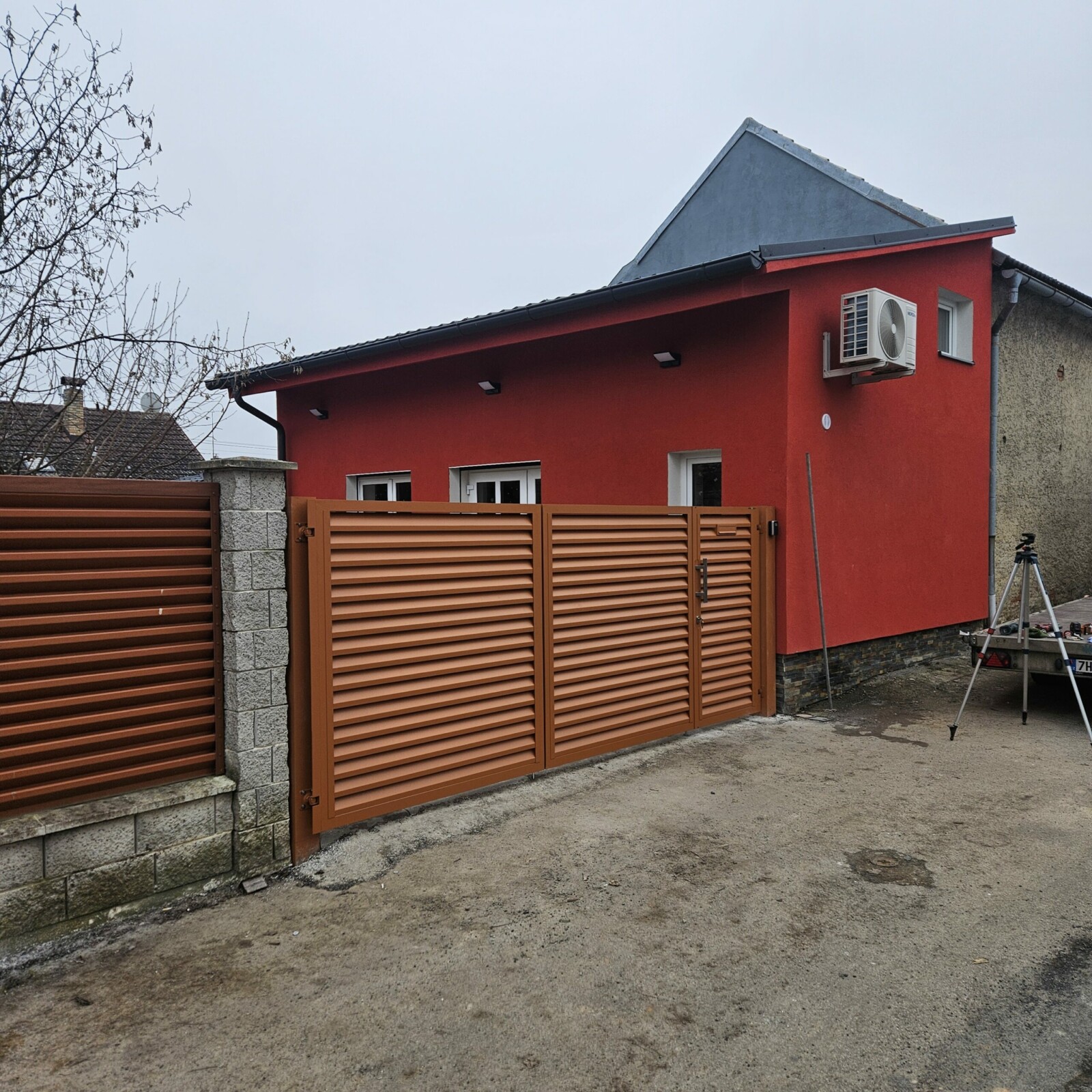 • Dvoukřídlá hliníková brána: 4400 × 1900 mm (manuální, asymetrická)
