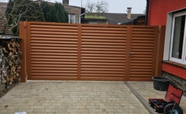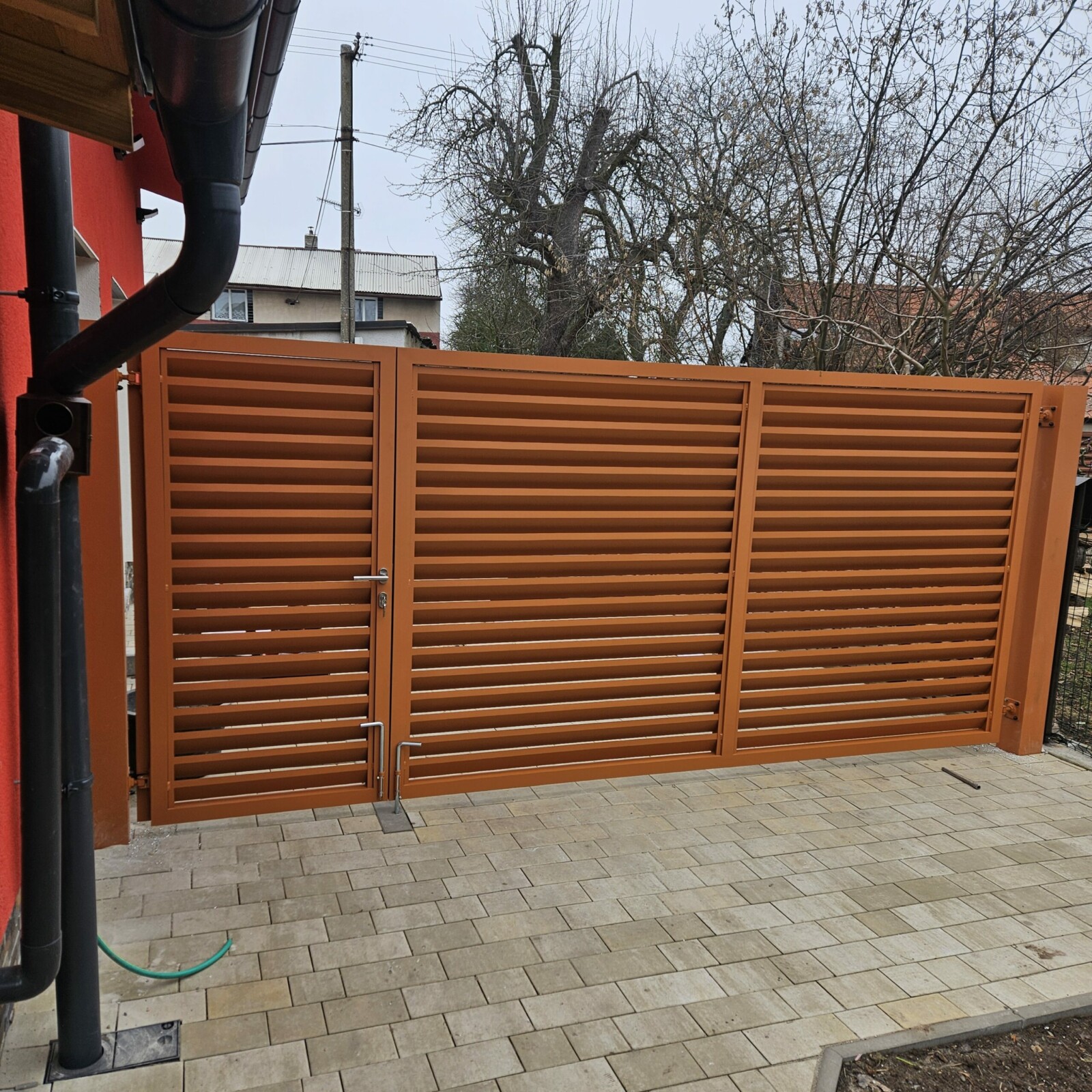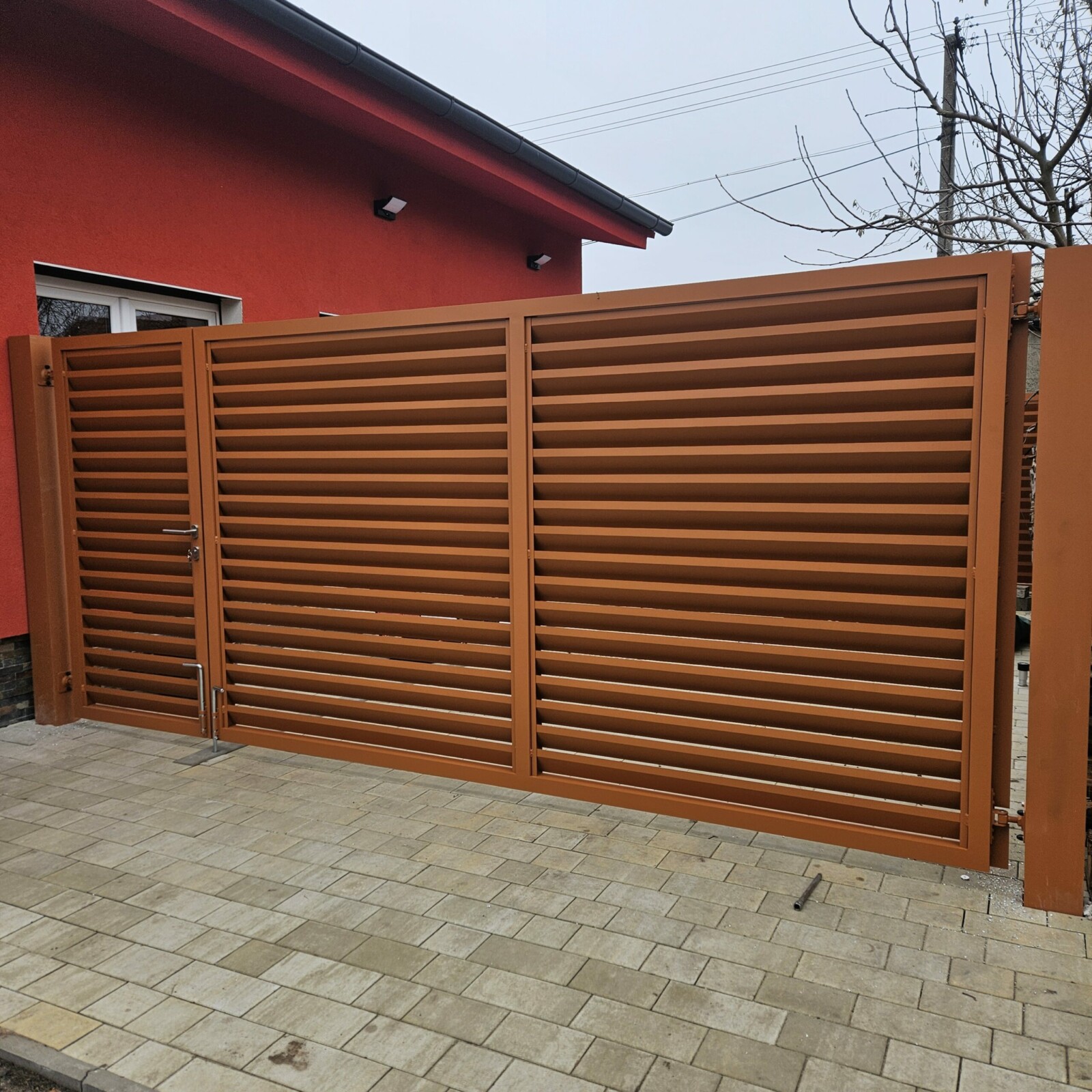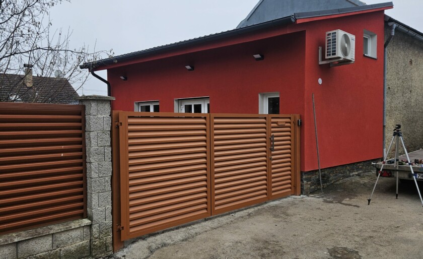 • Dvoukřídlá hliníková brána: 4400 × 1900 mm (manuální, asymetrická)