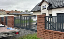 Ve Varnsdorfu jsme realizovali moderní hliníkové oplocení v méně tradičním, ale stále oblíbenějším vertikálním provedení (PPH60 Vertical). Celá sestava v barvě RAL 7016 zahrnuje samonosnou vjezdovou bránu, branku a pět plotových polí. Pro bránu byl použit robustní dojezdový sloupek kotvený na patku.