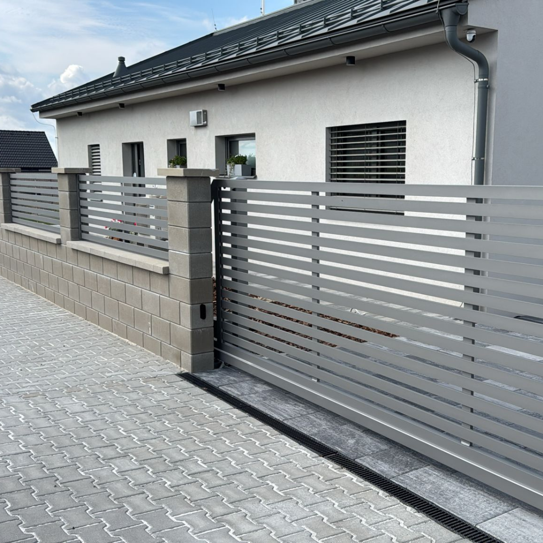 Dokončili jsme montáž hliníkového oplocení v konstrukci PPH60 ve Vejprnicích. Zvolený odstín RAL 9007 (šedý hliník) dodává nemovitosti moderní a čistý vzhled. Hlavním prvkem je samonosná brána o průjezdu 4000 mm, osazená pohonem Somfy Elixo. Pro zajištění maximální stability celého systému jsme při montáži použili podložky pod vozíky i samotný pohon.