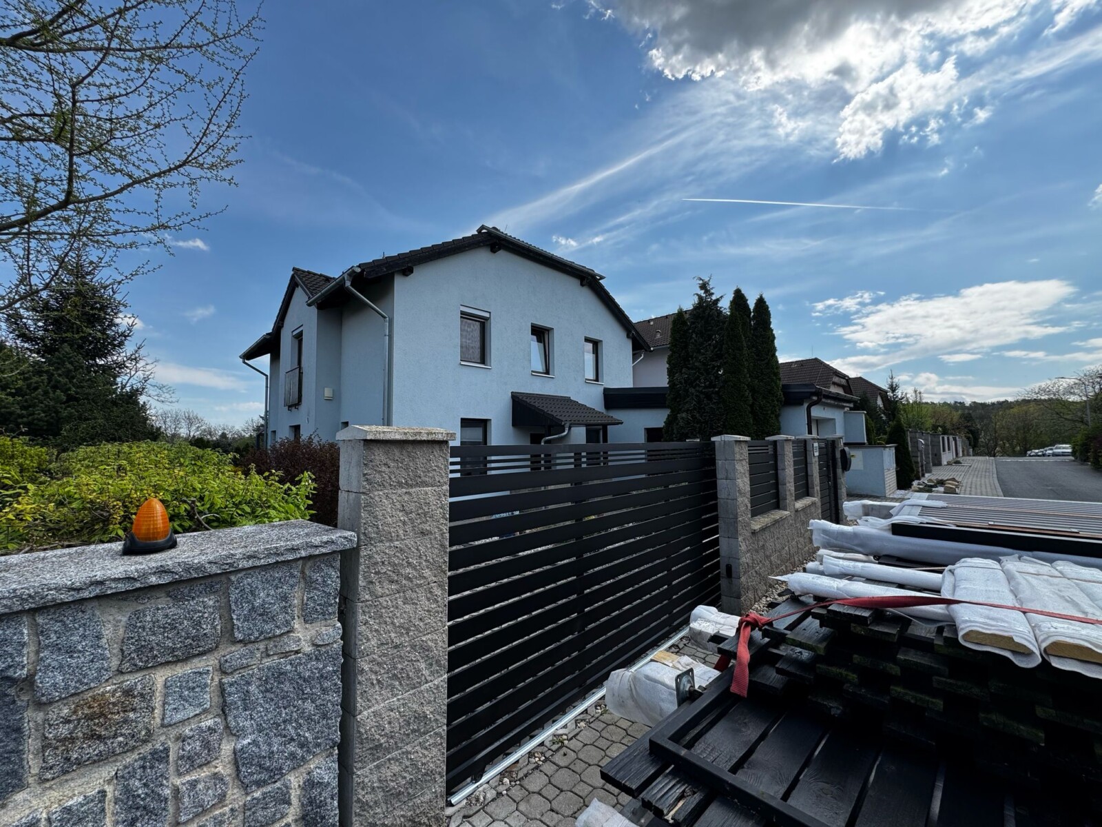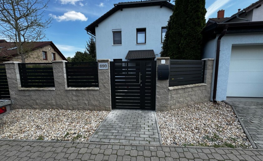 V obci Velké Přílepy jsme nainstalovali hliníkové oplocení, které se stalo součástí pozemku s dvoupatrovým rodinným domem. Majiteli byl zvolen motiv PPH COMBI v kovářské černé barvě, který nabízí moderní a čistý vzhled díky elegantní kombinaci různých šířek lamel navržených dle přání majitelů. Horizontální uspořádání navíc opticky rozšiřuje prostor, což právě třeba i u vysokých staveb ve výsledku působí velmi vyváženě.