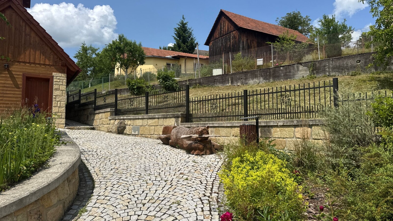 V Podhradí jsme realizovali kovaný plot v konstrukci PPK7 šp.1 v kovářské černé barvě s ozdobným ornamentem. Kombinaci, která dodává nemovitosti nadčasový a elegantní charakter. Plot byl přizpůsoben členitému terénu, o čemž svědčí celkem sedm plotových polí různých šířek osazených na ocelových sloupcích 80×80 mm. Výsledkem je oplocení, které perfektně kopíruje pozemek a zároveň působí jako celistvý a esteticky hodnotný celek.