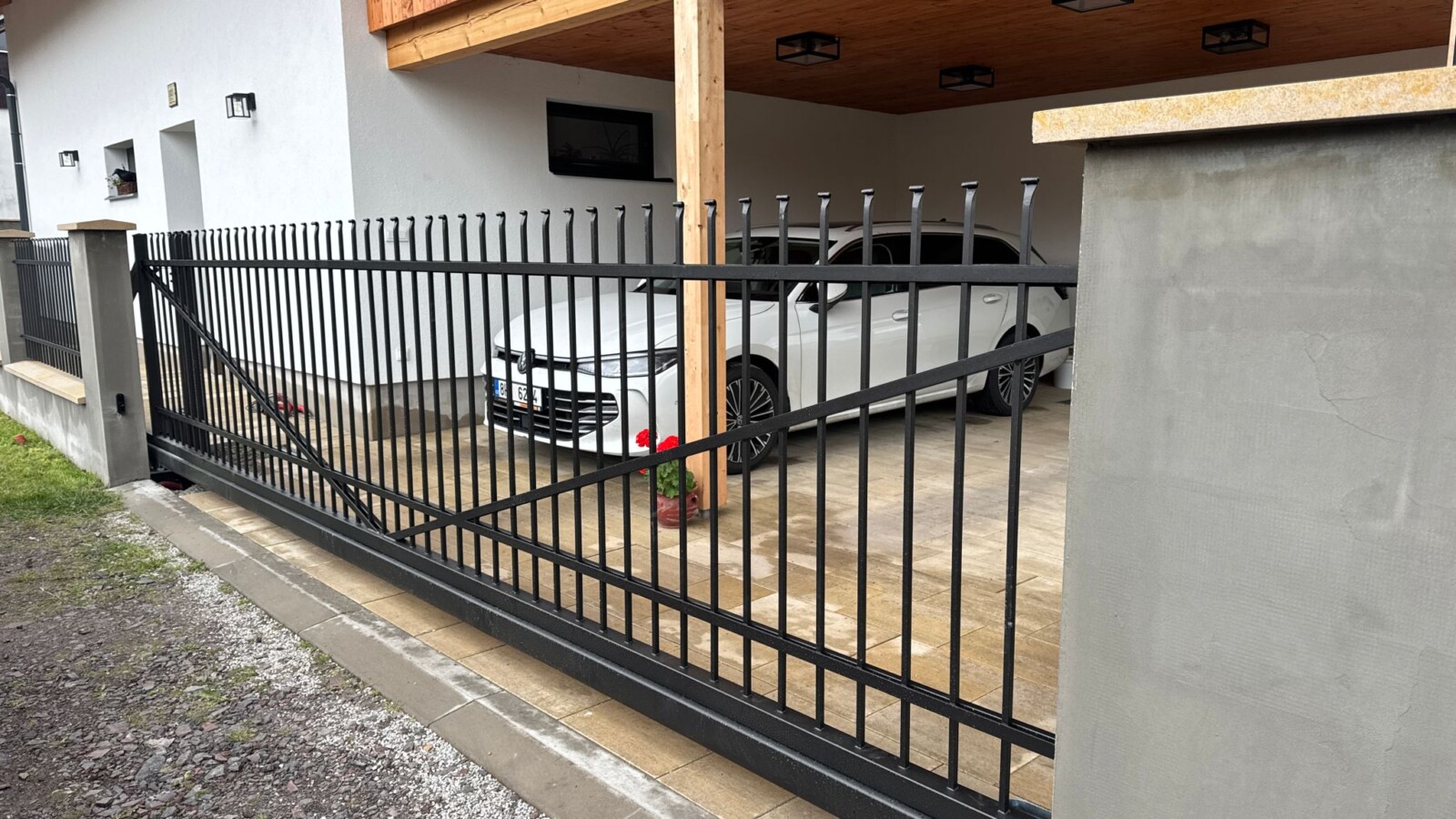 V obci Štěnkov jsme realizovali instalaci kovaného oplocení. Volbou designu PPK1 v klasické kovářské černé barvě bylo stvořeno elegantní a prémiově vypadající oplocení. Oplocení je vysoce pevné, kvalitní, nadčasové a bezúdržbové.