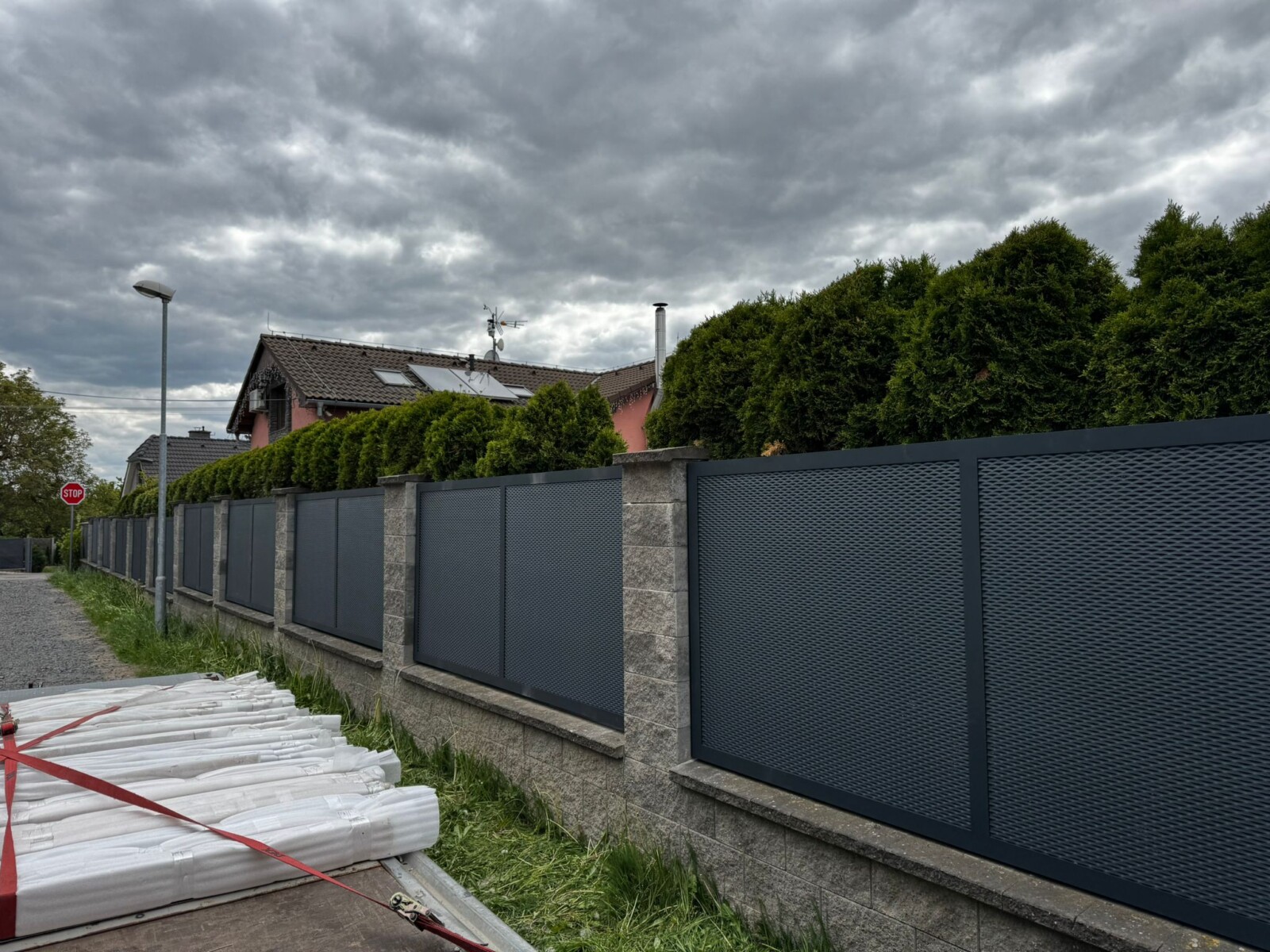 V Říčanech jsme dokončili realizaci, která elegantně vyřešila potřebu maximálního soukromí. Zvolen byl totiž hliníkový tahokov v motivu PPT1AL v šedé antracitové barvě (RAL 7016). Díky propustnosti světla motivu pouhých 10 % nabízí majitelům klid, soukromí a bezpečí. Tento plot nabízí moderní vzhled s vysokou pevností, přičemž zaručuje životnost mnoha desítek let a naprostou bezúdržbovost.